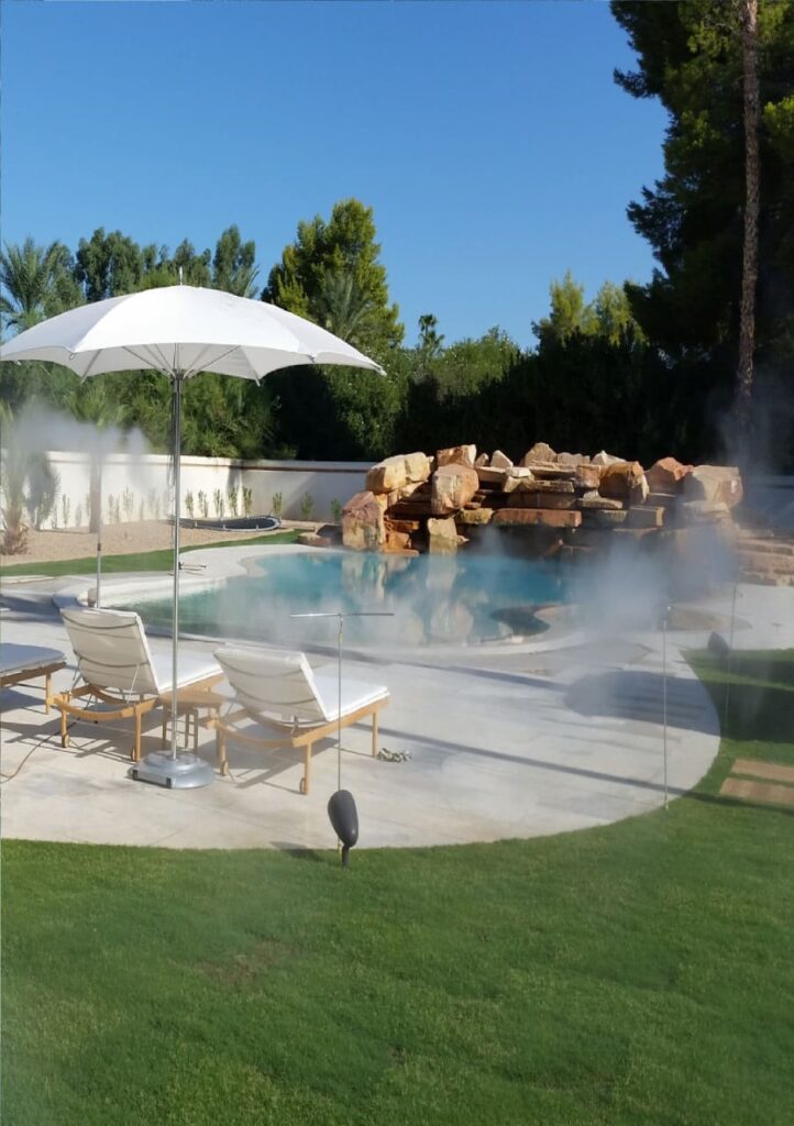 تصميم نظام تبريد مخصص يغطي مساحة 800 م² لضمان توزيع مثالي للرذاذ.